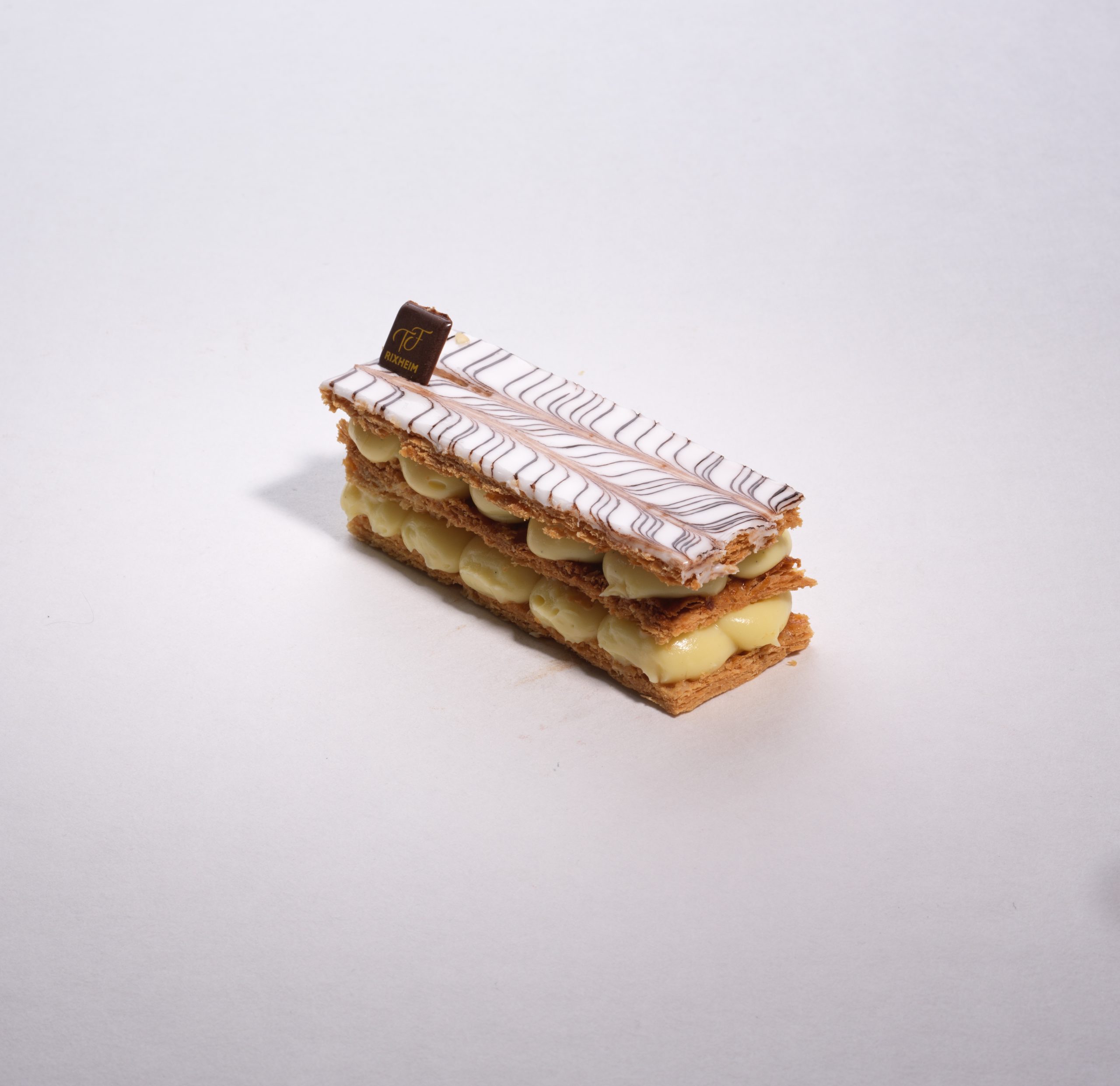 Pâte feuilletée caramélisée, crème pâtissière vanille de Madagascar , fondant