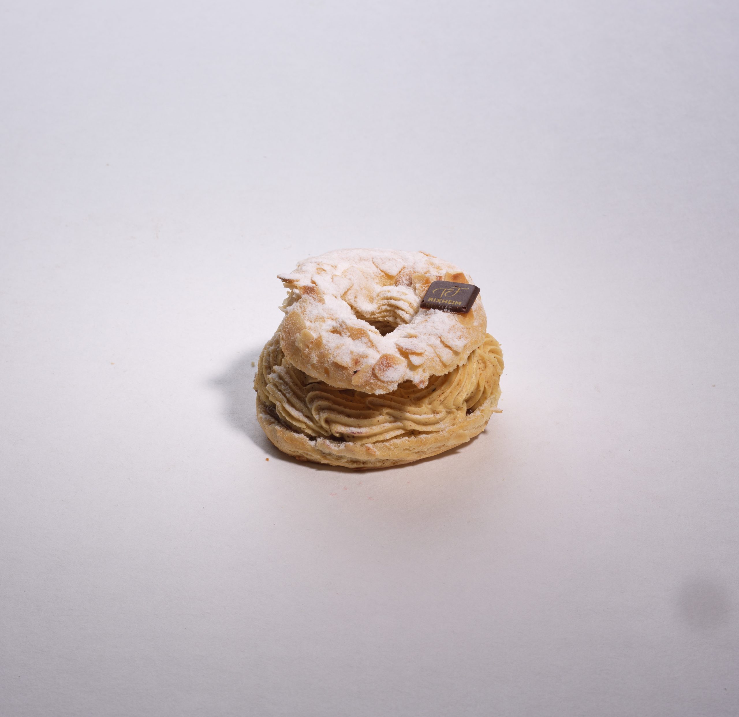 pâte à choux, crème légère à la noisette, praliné noisette, amandes effilées